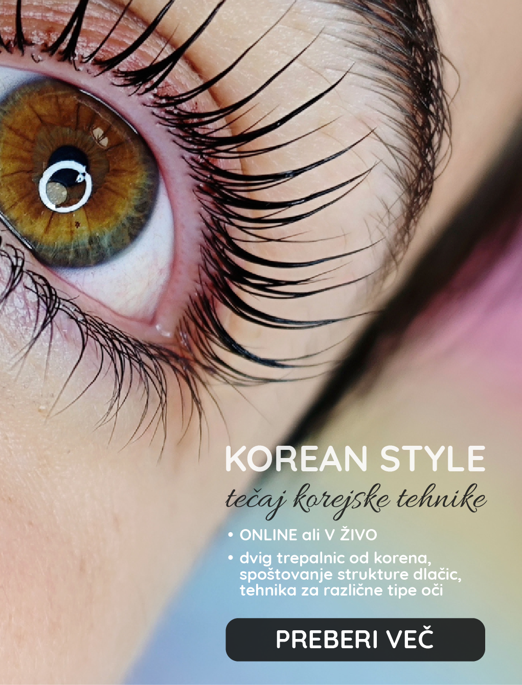 Strokovno certificirano usposabljanje s področja podaljševanja in vihanja trepalnic ter laminacije obrvi.
